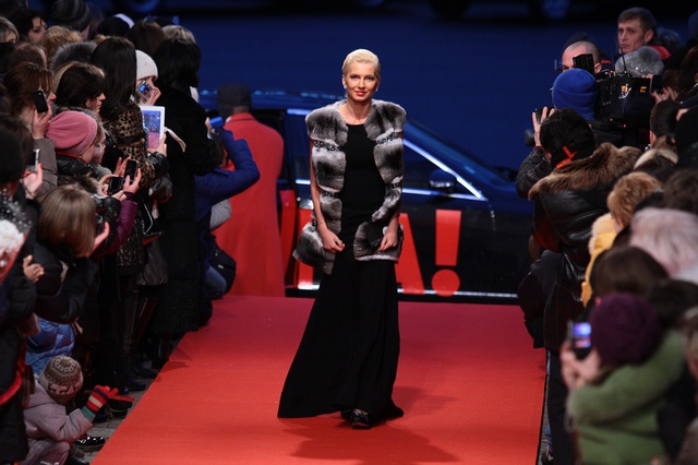 Ольга Полякова швидко пробігла по доріжці, щоб піти в гримерку і підготуватися до ведення церемонії. Саме Ольга цього року удостоїлася честі вести премію.
