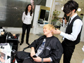 В офисе E-motion певец с помощью iPad подняд в воздух забавную штуковину.