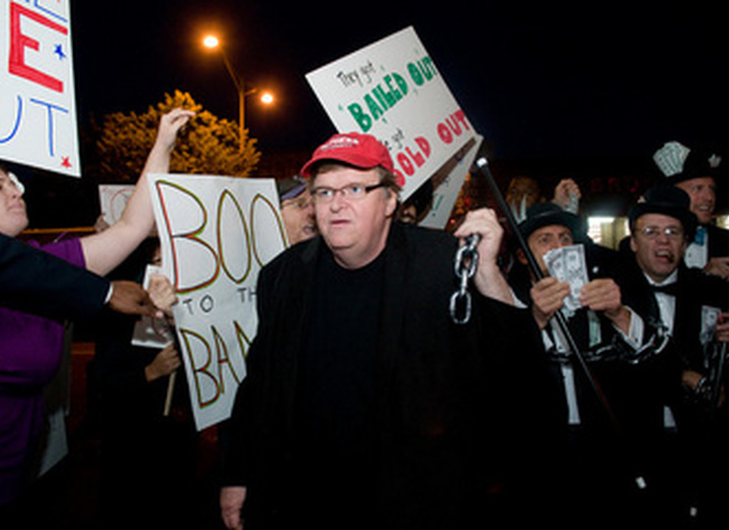 Новая лента Майкла Мура исследует истоки финансового кризиса, изобличая денежные манипуляции крупных финансовых олигархов и политиков высшего эшелона. Сам режиссер говорит о своем фильме следующее: «Это картина об идеальной любви, под названием «капитализм», в результате которой каждый день только в США исчезают 14 тысяч рабочих мест».